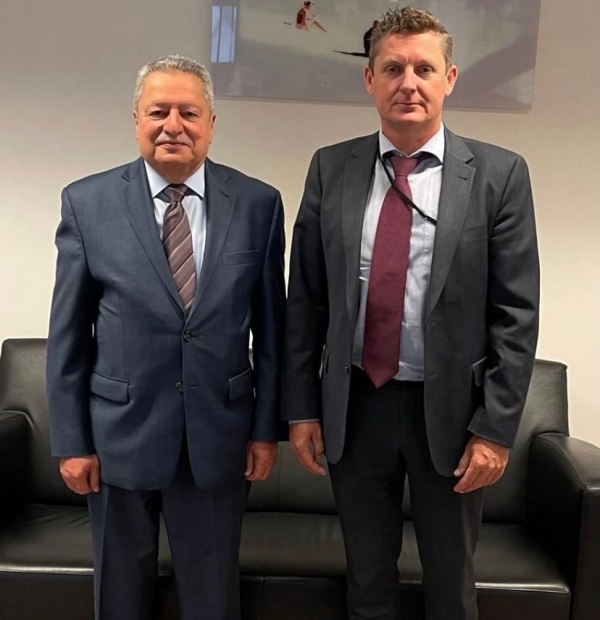 واستعرض السفير مصطفى، جهود مجلس القيادة الرئاسي، وتعاون القيادة والحكومة مع المبعوث الأممي من أجل تثبيت واستمرار الهدنة الأممية والموافقة على فتح مطار صنعاء ودخول المشتقات النفطية عبر ميناء الحديدة.