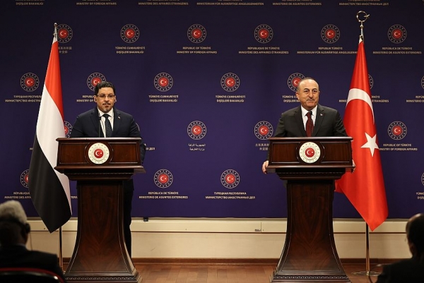 وقال أوغلو في المؤتمر الصحفي المشترك، الخميس، بالعاصمة أنقرة، أن اليمن الذي يقع على أهم الممرات البحرية في العالم يمتلك موارد طبيعية مهمة، "لكنه يمر بمرحلة صعبة بسبب الحرب المتواصلة منذ أعوام".