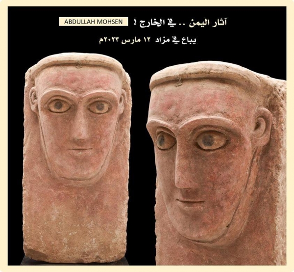 قال الباحث في مجال الآثار عبدالله محسن، إن شاهداً جنائزياً لوجهٍ يمني نبيل، سيعرض للبيع بعد ستة أيام في مزاد أبولو الشهير.