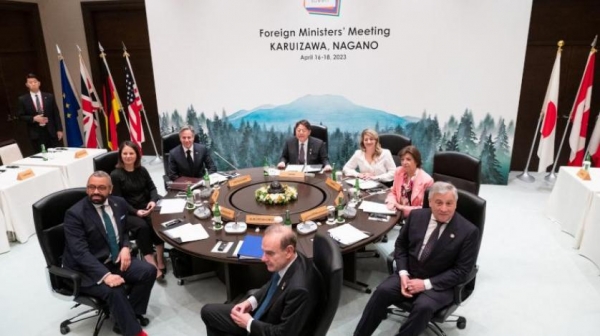 وقال وزراء خارجية الدول السبع في البيان الختامي لاجتماعهم الذي استمر على مدى 3 أيام، في منتجع كارويزاوا بناغانو اليابانية: "ندعو جميع الأطراف، وخاصة الحوثيين، إلى ضمان وقف دائم لإطلاق النار، والعمل من أجل عملية سياسية شاملة بقيادة يمنية".