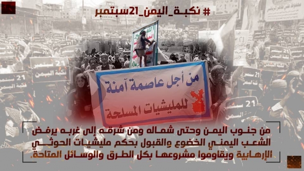 وقالت إدارة الحملة في بلاغ، "تحل الذكرى ال"9" لنكبة انقلاب مليشيات الحوثي الإرهابية المدعومة من إيران، والتي مثلت خلال السنوات الماضية أسوأ مرحلة في تاريخ اليمن الحديث على كافة الأصعدة الاقتصادية والاجتماعية والإنسانية".