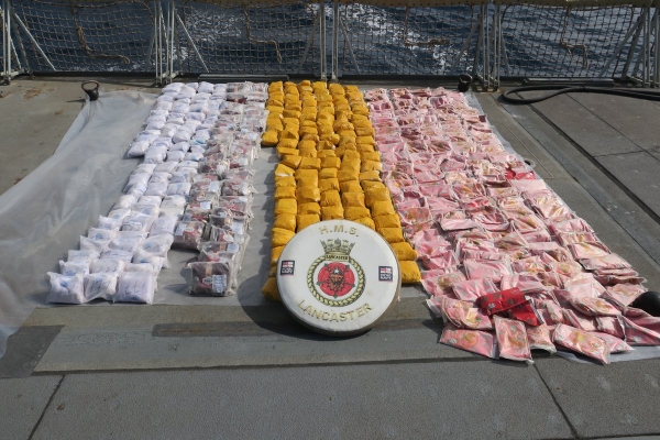 وأضاف البيان، أنه بعد ذلك تم نقل المخدرات، التي يقل وزنها عن نصف طن بقليل، إلى سفينة HMS Lancaster، وهي مهمة صعبة في ظل درجات الحرارة المرتفعة وأمواج البحر.