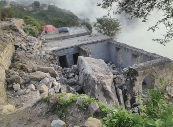 انهيارات صخرية تدمر أربعة منازل شمالي غرب تعز