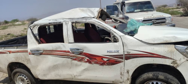 توفي ضابط في قوات العمالقة وأصيب عدد من مرافقيه في حادث سير بمحافظة أبين (جنوبي اليمن).