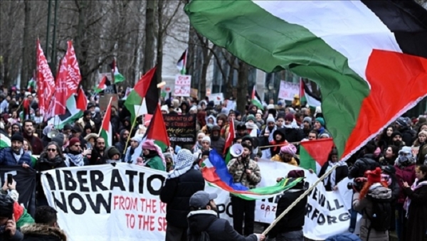 وكانت العاصمة البلجيكية بروكسل، قد شهدت الأحد خروج الآلاف في تظاهرة تطالب بوقف إطلاق النار في قطاع غزة، وهتفوا بشعارات "العدالة الآن من أجل فلسطين".