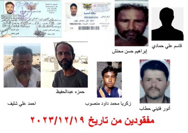 وذكر الصحفي بسيم الجناني، نقلا عن مصدر في ميناء الاصطياد بمديرية الخوخة، أن الصيادين كانوا في رحلة صيد، وأعلن عن أختفائهم منذ شهر.