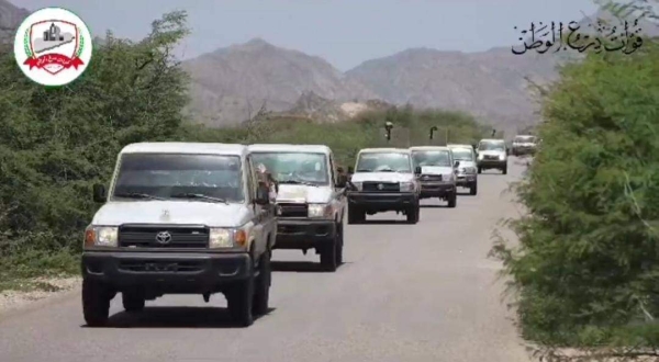 وقالت مصادر عسكرية، إن قوات درع الوطن، دفعت الجمعة، بعشرات الأطقم العسكرية إلى جبهتي "عيريم وحيفان" شمال لحج، على خطوط التماس مع مليشيا الحوثي.