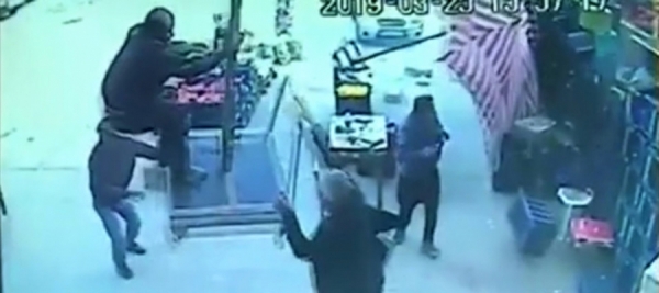 وأظهرت كاميرات المراقبة صادق، الذي يملك أحد الأكشاك في السوق، بينما يقف على قاعدة الشمسية الثقيلة لمنعها من الطيران خلال الرياح العاصفة.