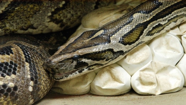 اكتشف خبراء حماية الحياة البرية، في ولاية فلوريدا الأمريكية، أفعى ضخمة من نوع النمر يبلغ وزنها 74 كيلوغراما، وضعت 50 بيضة تحت مبنى سكني.
