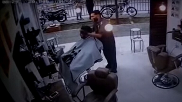 ووفقا للفيديو المتداول، كان الشاب على وشك إنهاء جلسة الحلاقة، ليقتحم المجرم الصالون ويطلق النار ويفر هاربا على دراجة نارية، وسط دهشة وصدمة الموجودين.