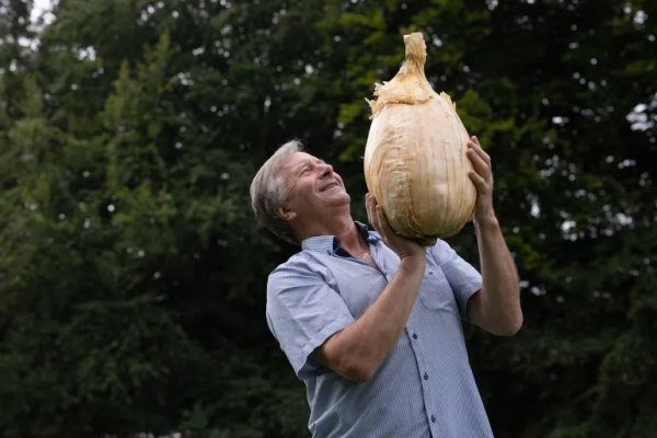 عُرضت اليوم السبت في إنجلترا ثمرة بصل عملاقة تزن نحو 9 كيلوغرامات، في معرض لزهور الخريف في شمال البلاد.