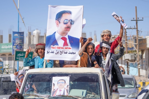 وأمس الجمعة، تظاهر الآلاف من أبناء محافظة شبوة، الجمعة، تأييدًا للمحافظ محمد صالح بن عديو والمطالبة ببقائه على رأس السلطة المحلية في المحافظة، استجابة لدعوات شعبية أطلقها ناشطون على مواقع التواصل الاجتماعي، عقب تسريبات تتحدث عن توجهات لإقالة بن عديو من منصبه، بضغط من التحالف بقيادة السعودية.