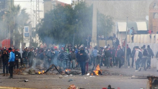 وانتشرت احتجاجات عنيفة في عدة مدن في شمال وجنوب تونس الليلة الماضية بعد قرارات حكومية بفرض ضرائب جديدة ورفع أسعار بعض المواد الاستهلاكية. وأسفرت الأحداث عن مقتل شخص.