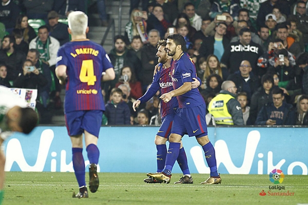اكتسح برشلونة مضيفه ريال بيتيس، بخماسية نظيفة، ليواصل تألقه خلال الموسم الحالي، ويبتعد عن أقرب ملاحقيه بفارق 11 نقطة في صدارة الترتيب العام للدوري الإسباني.
