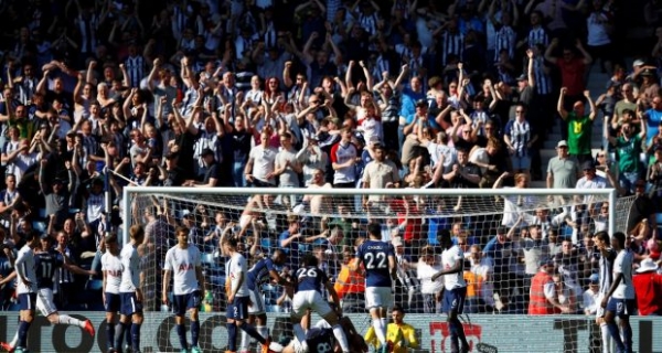 سقط فريق توتنهام هوتسبير أمام مضيفه فريق وست بروميتش البيون في الوقت القاتل من المباراة التي أقيمت مساء اليوم السبت على ملعب ذا هاوثورنس ضمن الجولة السابعة والثلاثين من بطولة الدوري الانجليزي الممتاز بالخسارة 0-1.
