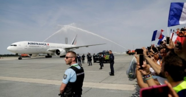 وحطت الطائرة التي تقل المنتخب الفرنسي في المطار الرئيسي قرب باريس قبيل الساعة 17,00 بالتوقيت المحلي (18,00 ت غ).
