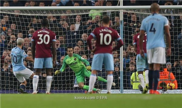 واقترب أجويرو من تسجيل أول أهداف اللقاء بالدقيقة 26، بعد عرضية ديفيد سيلفا من الناحية اليسرى، قابلها سيرجيو بتسديدة يسارية، لترتطم بمدافع وست هام وتمر بجوار القائم إلى ركنية.