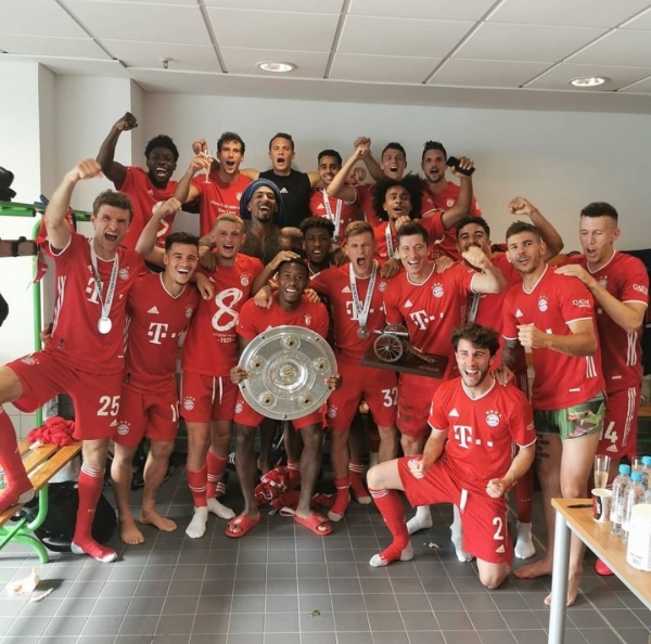 احتفل بايرن ميونيخ بفوزه بلقب موسم 2019-2020 من دوري الدرجة الأولى الألماني لكرة القدم بالتتويج بدرع البطولة بشكل مميز ورائع لم ينقصه إلا تواجد جماهير العملاق البافاري التي غابت بسبب الإجراءات الاحترازية للحد من تفشي فيروس كورونا المستجد.