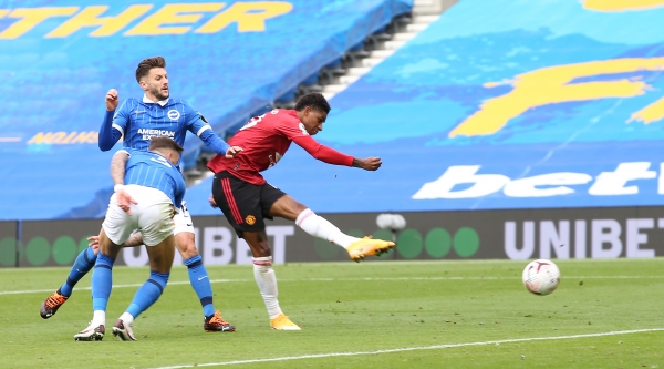 وسجل الفرنسي نيل موباي (40 من ركلة جزاء) وسولي مارش (90+5) لبرايتون، فيما سجل المدافع لويس دنك (43 خطأ في مرماه)، ماركوس راشفورد (55) والبرتغالي برونو فرنانديش (90+10 من ركلة جزاء) للضيوف.