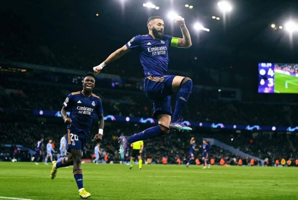حقق المهاجم الفرنسي المتألق كريم بنزيما إنجازا تاريخيا خلال مباراة فريقه ريال مدريد أمام مضيفه مانشستر سيتي (3-4) مساء يوم الثلاثاء، في ذهاب الدور قبل النهائي لدوري أبطال أوروبا.