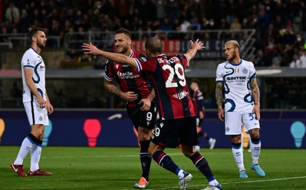 أخفق إنتر في اعتلاء صدارة الدوري الإيطالي على حساب جاره ميلان بعدما سقط الأربعاء أمام مضيفه بولونيا 1-2 بهفوة من حارس مرماه في مباراة مؤجلة من المرحلة 20.