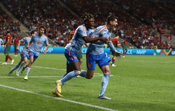 انتزعت إسبانيا مكانا في الدور نصف النهائي لدوري الأمم الأوروبية لكرة القدم، بعد أن سجل المهاجم ألفارو موراتا هدف الانتصار 1-صفر على البرتغال المضيفة الثلاثاء، ليضمن الفائز صدارة المجموعة الثانية بالمستوى الأول، والتي شهدت أيضا فوز المنتخب السويسري على التشيكي 2-1.